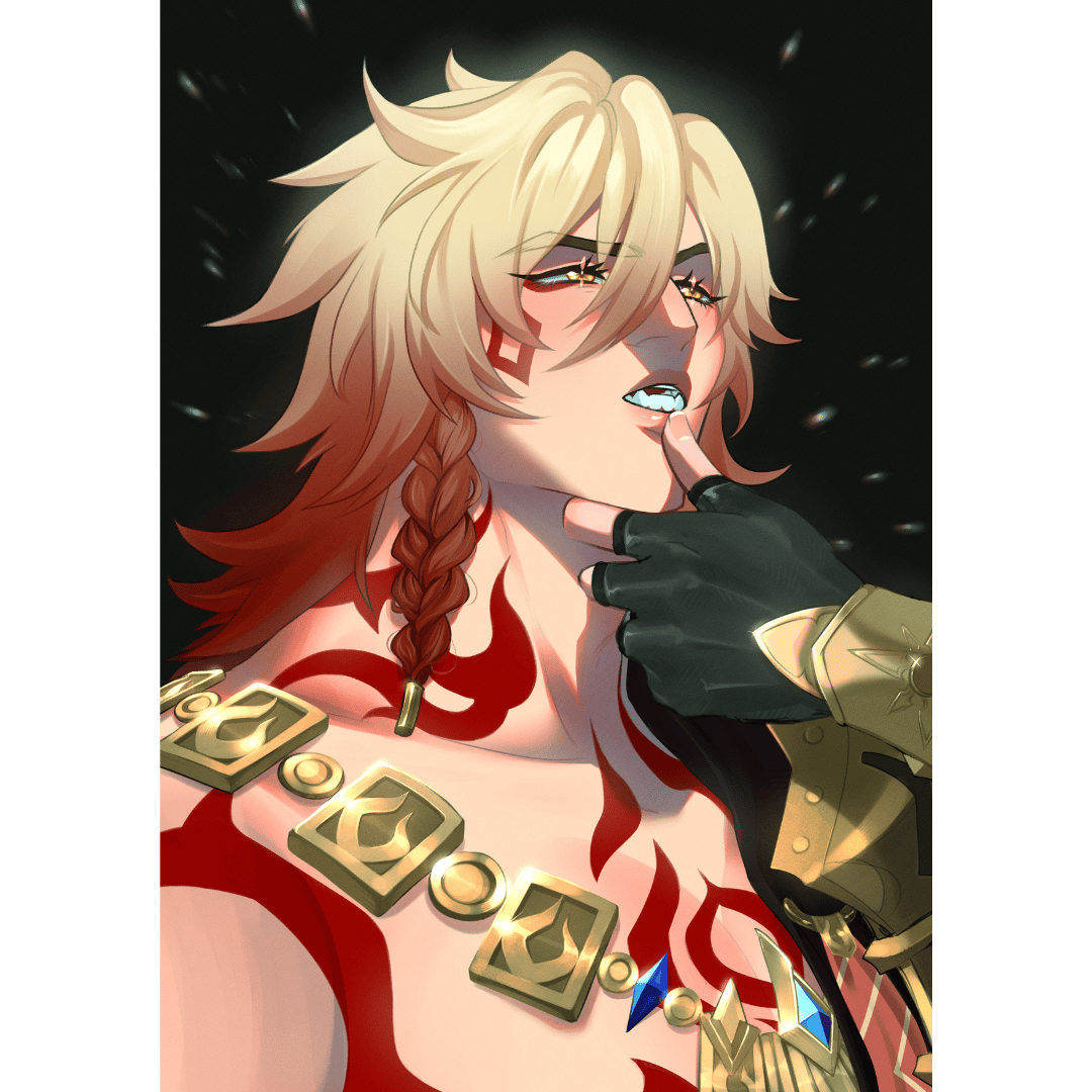 A4 or A5 print of my fanart of Mydei and Phainon from Honkai Star Rail.
