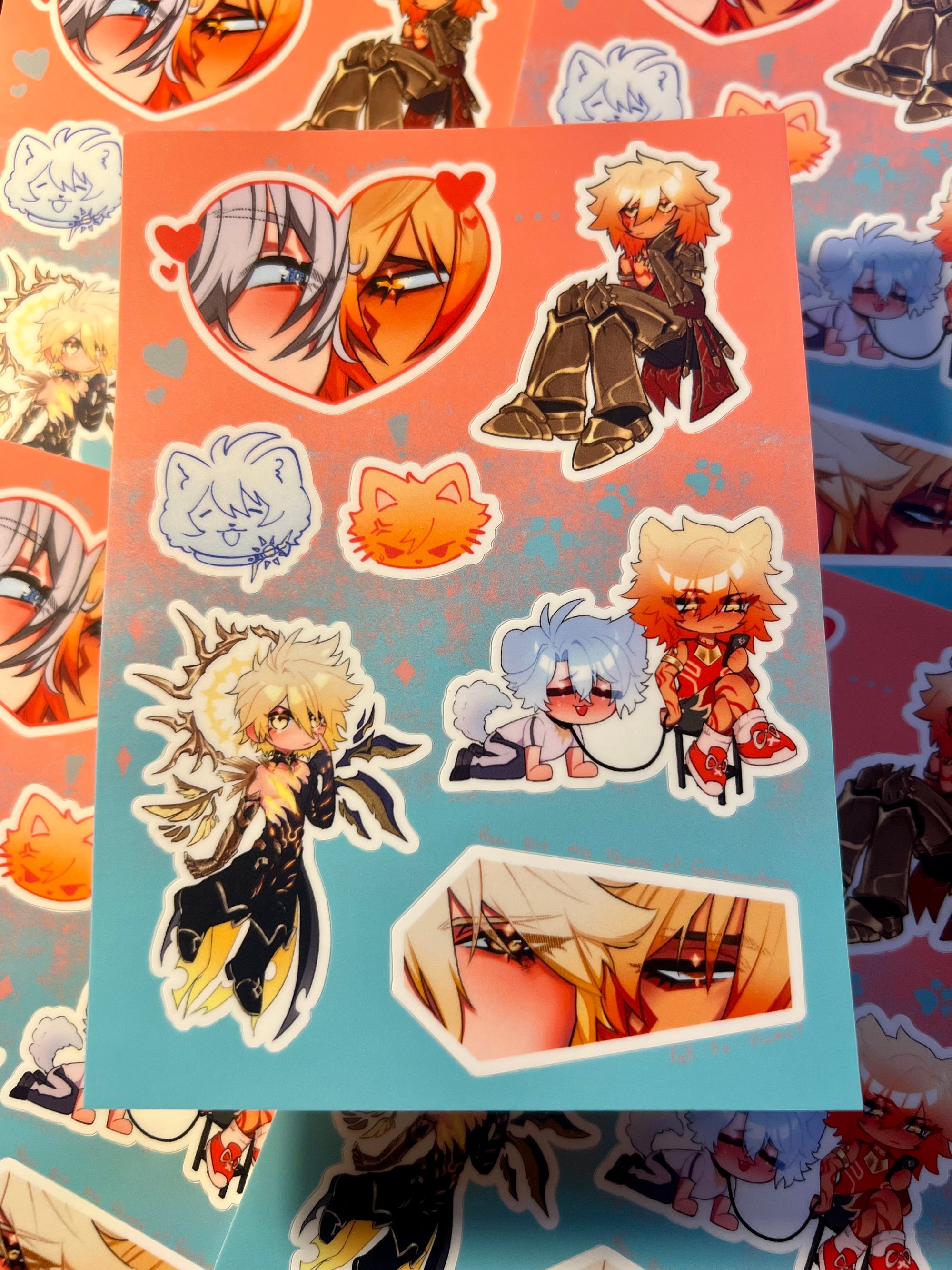 A6 sticker sheet of Phainon and Mydei from Honkai Star Rail! Can you find the hidden quotes in the sheet? ❤️🩵