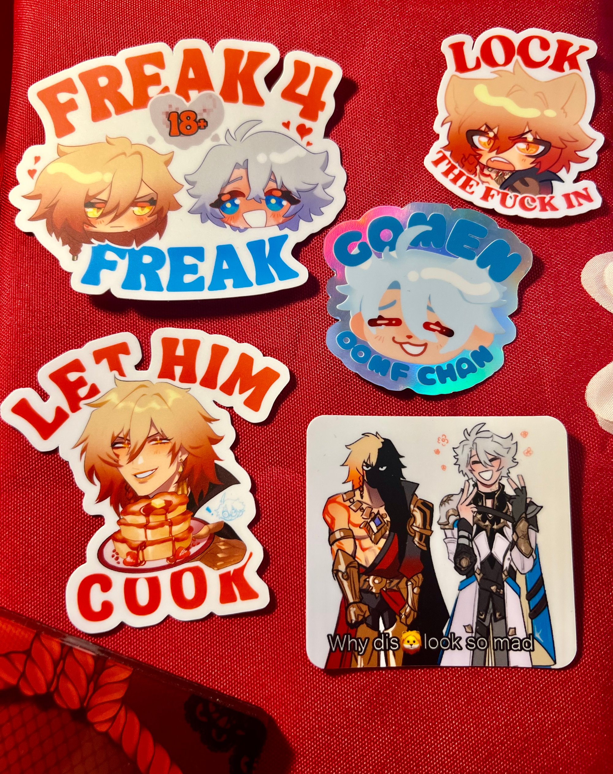 From 8 cm to 5 cm matte stickers of Phainon & Mydei from Honkai Star Rail!